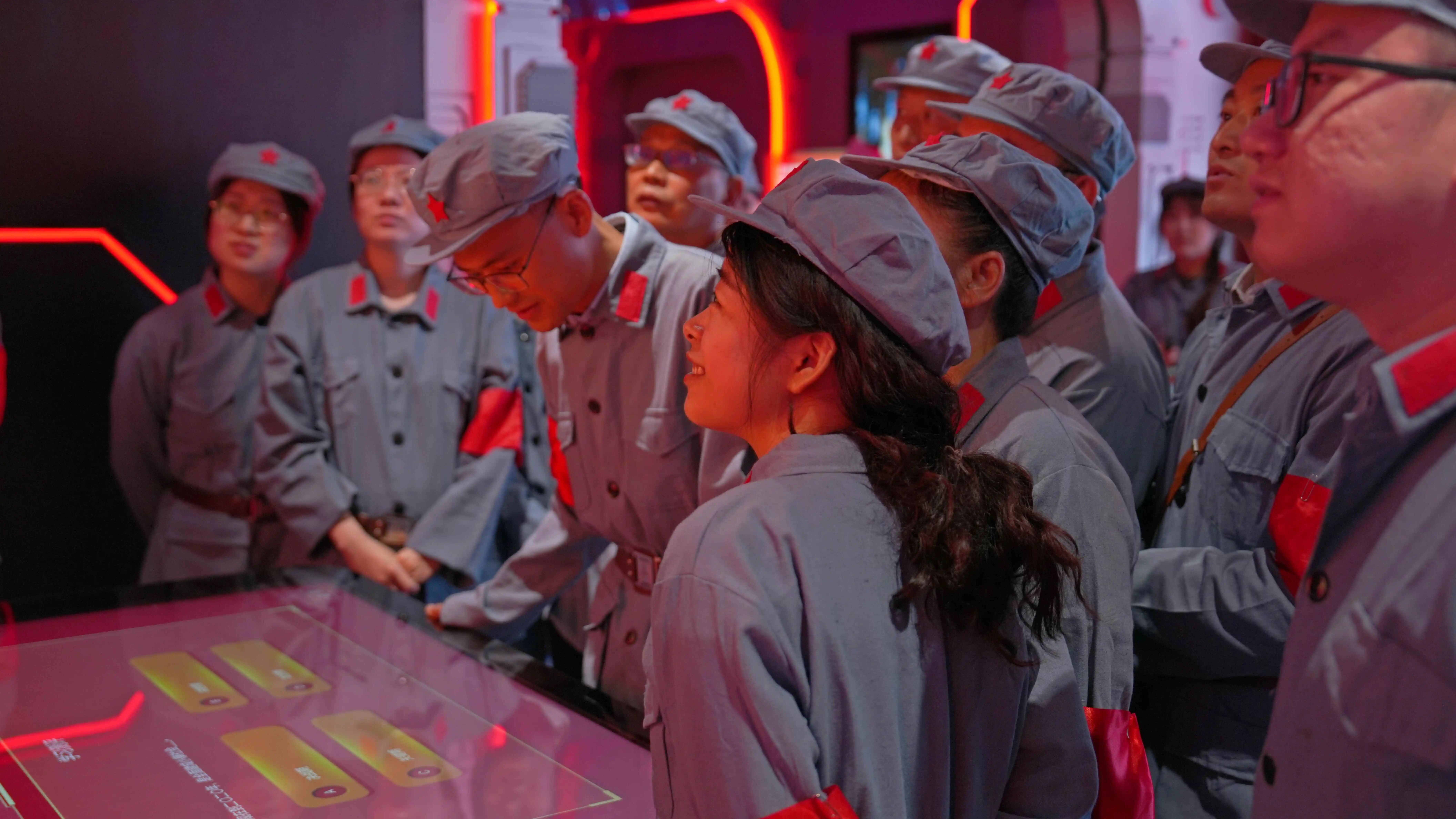 活動伊始,黨員們換上整齊的紅軍軍裝,仿佛穿越回那個烽火年代。在虛擬制作體驗區(qū)的LED環(huán)幕前,《長征前的秘密協(xié)議》徐徐上演,波瀾壯闊的畫面與震撼的音效將大家?guī)腴L征出發(fā)前的緊要關頭,信仰的力量在光影交織中鮮明躍動。